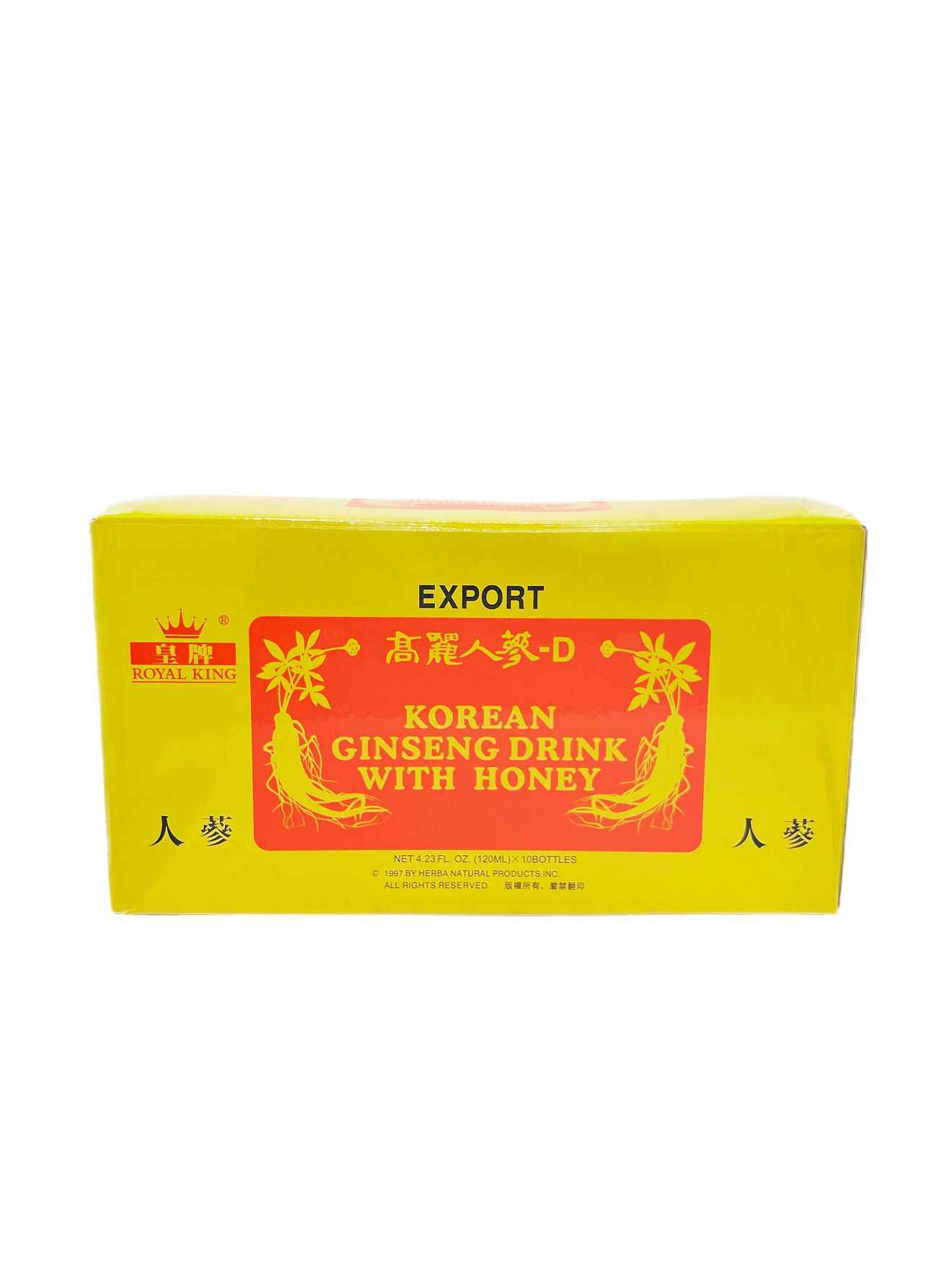 Royal King's Korean Ginseng Root in a bottle is made with honey. Ginseng Root in a bottle is a an extra strength, natural source of energy liquid drink containing ginseng root. Each case contains 10- 4.23 bottles.